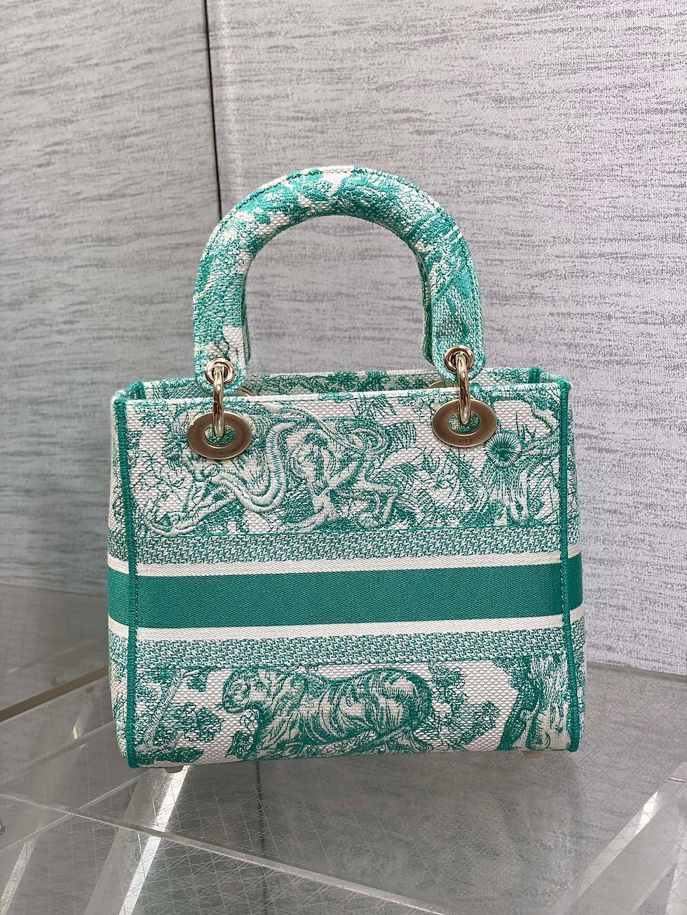 Christian Dior Lady D-Lite Rose Gold Handbag Green Multicolor